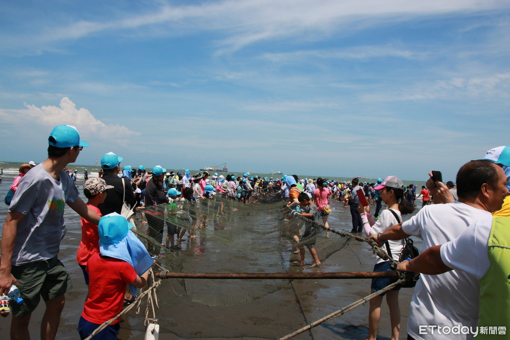 ▲竹南龍鳳漁港舉辦的千人牽罟活動,許多家長帶著一家老小參加,不畏烈日體驗著海港、人文的風情。(圖/記者黃孟珍翻攝)