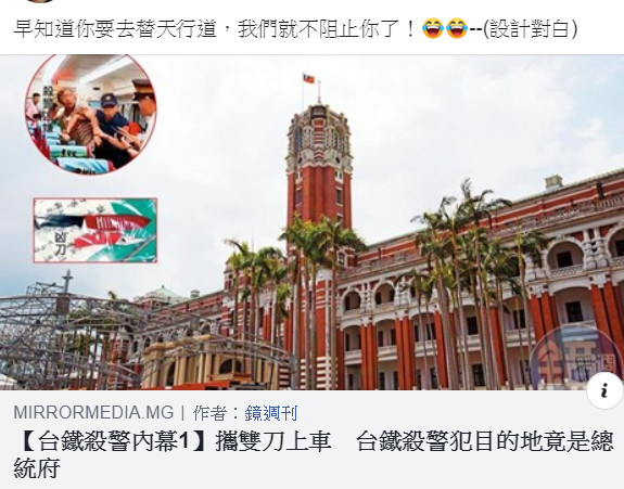 7月3日晚間爆發台鐵史上第一起火車殺人事件,25歲的鐵路警察李承翰被54鄭姓男子持刀刺死,據了解,鄭男當天最終的目的地其實是到總統府陳情。對此名嘴羅友志今日則是在臉書表示「早知道你要去替天行道,我們就不阻止你了。」不過這句話卻引發網友大力撻伐。