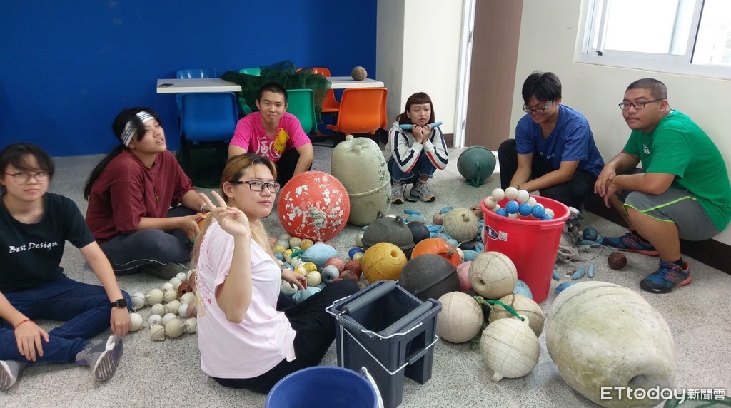 ▲台東專科學校學生利用100多公斤浮球為創作素材,賦予這些浮球新的生命。