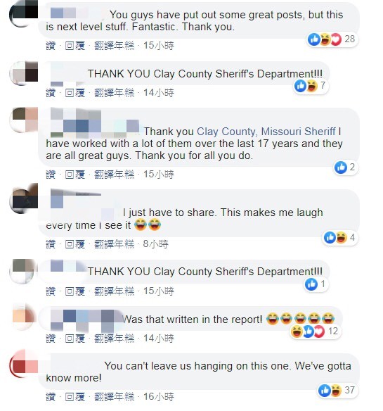 ▲民眾對警長辦公室的貼文反應熱烈。(圖/翻攝自克萊郡警長辦公室臉書)