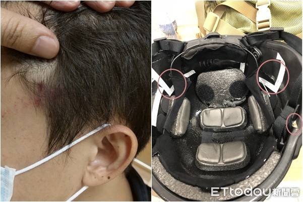 警方10日清晨調集警力前往嘉義縣大埔山區圍捕槍擊要犯陳宏宗,雙方還一度在現場展開駁火,當時其中一名許姓維安人員正要下車,不料陳嫌擊發的子彈就突然擊穿擋風玻璃、射入許員防彈頭盔中,彈頭還沿著帽緣、在頭盔與許員頭部間的狹小縫隙滑了一圈,最後掉出落在汽車儀表板上。警方事後也表示,子彈都打進防彈頭盔中,但許員僅只受到頭皮擦傷,「真的是命大!」