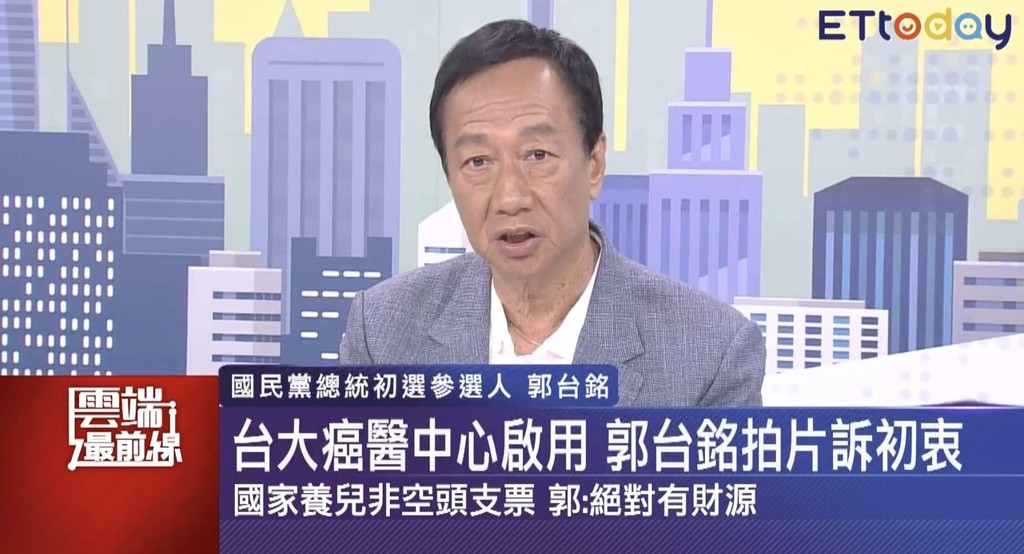 國民黨初選參選人郭台銘12日接受《ETtoday新聞雲》直播節目《雲端最前線》專訪,對於「身障保險社會福利記者會」因一位腦麻患者吃力比著替他加油的手勢而感動落淚,郭台銘感性表示,自己一直非常關心弱勢,如果能以中華民國總統身分幫助需要幫助的民眾,一定可以做得更多。