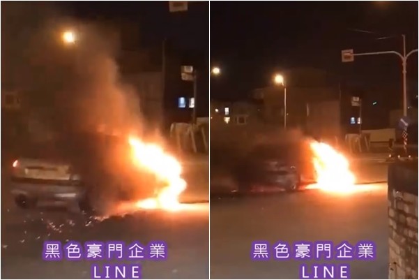 網友拍下影片上傳臉書「黑色豪門企業」,一輛自小客車就停在公義路中央,車尾還不斷閃著雙黃燈,但車頭卻已成為一團猛烈火球,火星還隨著陣風不斷飄散,迅速將車身吞噬,場面相當驚悚。