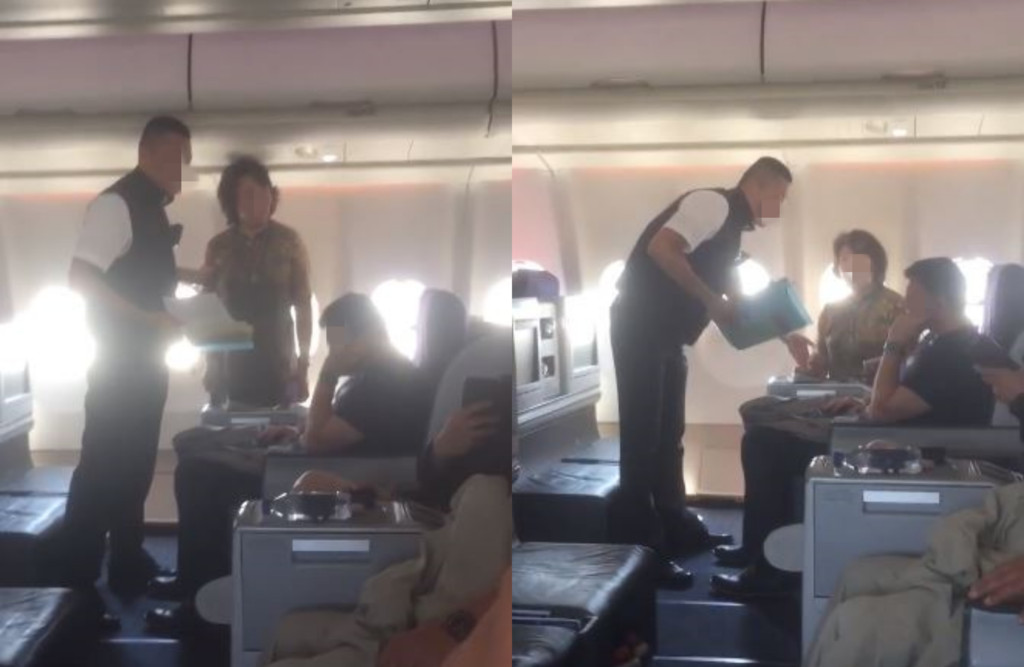 ▲自稱國航監督員的女子情緒激動,坐在旁邊的男乘客很無奈。(圖/翻攝自微博)