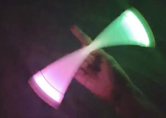 影片中,特製的筆在他手指間跳動,做出各種不同旋轉方式的高難度動作,除了運用指腹,還可以在手掌、手背上移動,在夜光模式下,高速旋轉的筆,形成一道道光譜,加上視覺暫留的錯覺,極具觀賞效果。