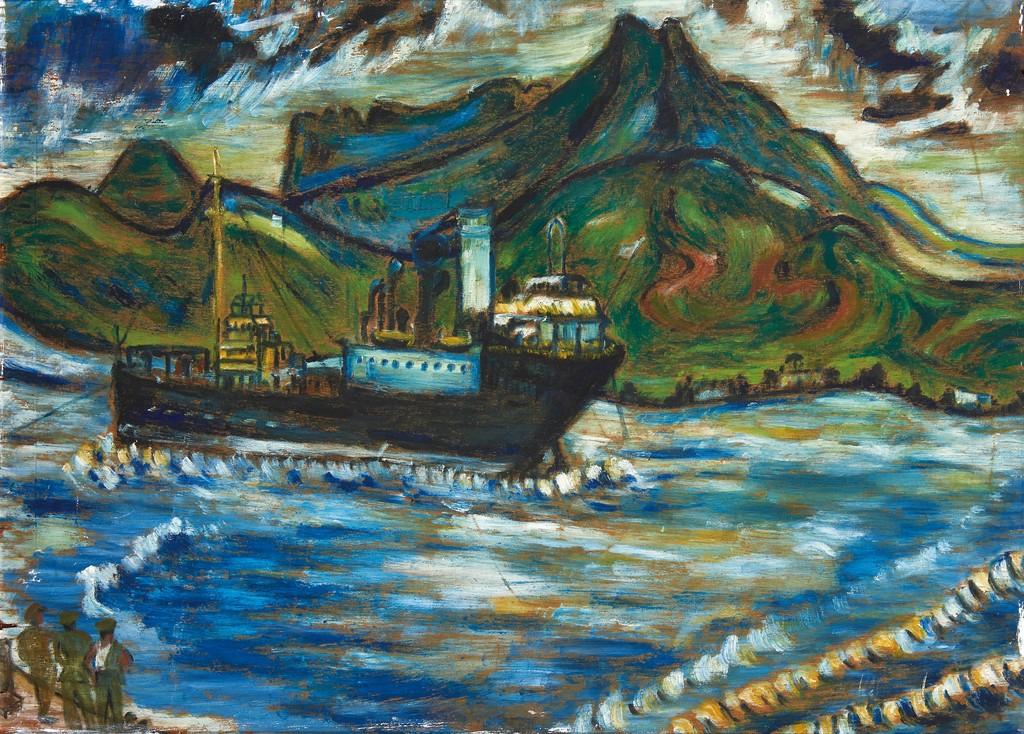 ▲淡水河曾經有大船穿梭,李永沱畫展記錄「淡水近半世紀的不復見的景物」。(圖/雲門基金會提供)