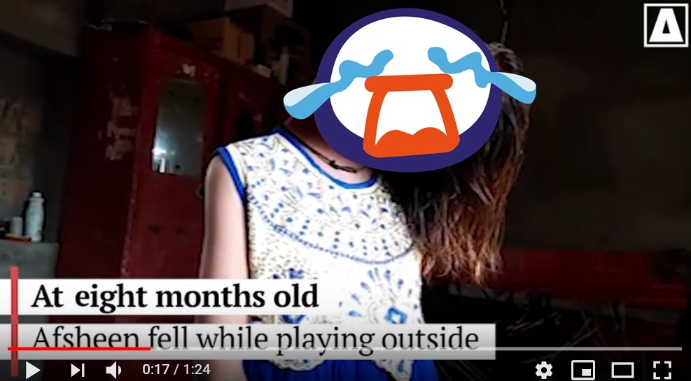 ▲女童摔傷後,脖子便一直維持90度的狀態。(圖/翻攝自YouTube/Pakistan News)