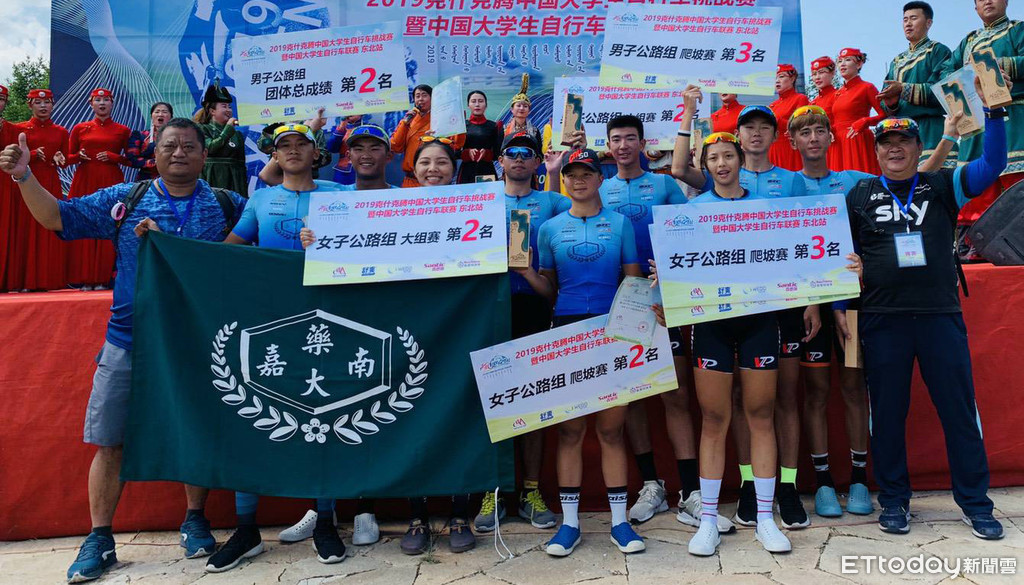▲嘉南藥理大學自由車隊參加中國大陸內蒙古舉行的「2019克什克騰國際大學生自行車挑戰賽」,分別榮獲團體亞軍及個人賽3銀3銅佳績,戰果輝煌。(圖/記者林悅翻攝,下同)