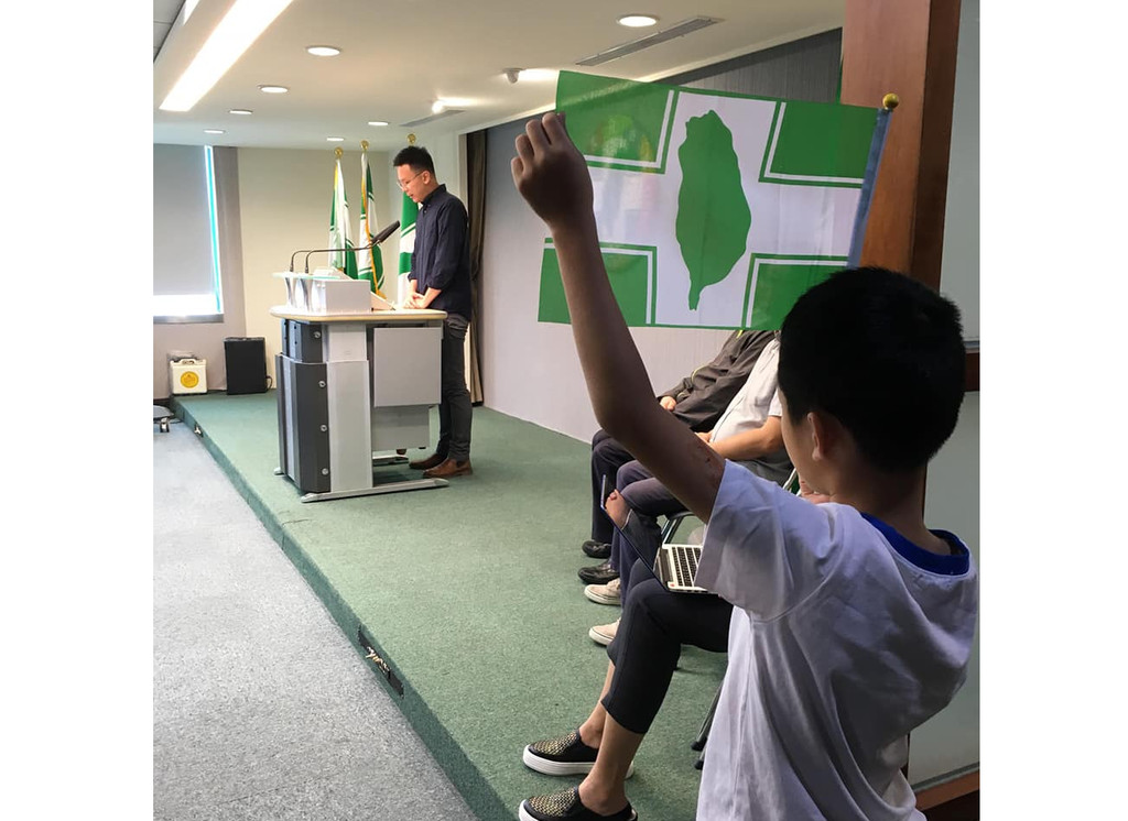 羅文嘉在臉書表示,暑假一邊工作,一邊要帶不上學的小孩,偏偏一週開始第一天特別忙,孩子只好跟上跟下當作民主見習生,而記者會現場,不知那來的小旗幟,孩子也不敢吵鬧,又愛湊熱鬧,就全程舉著旗子。