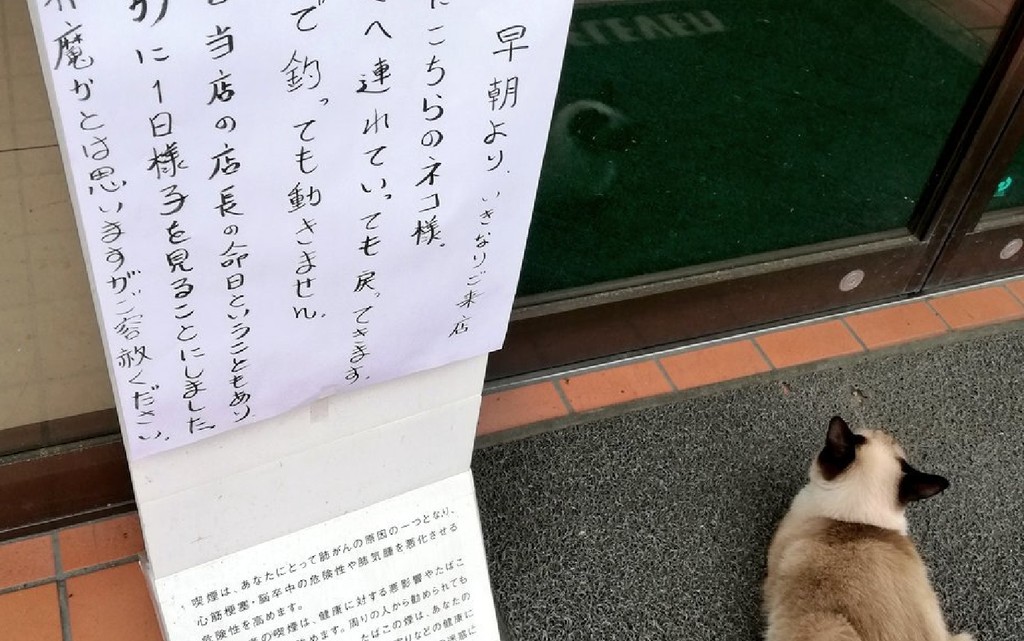 據日媒報導,便利商店副店長透露,從未在附近看過這隻貓咪,真的就是當天早上突然出現,一直坐到晚上6時許,因為有點妨礙客人,「實在不該讓牠待在門口,但牠就是不走」,才只好寫了公告。