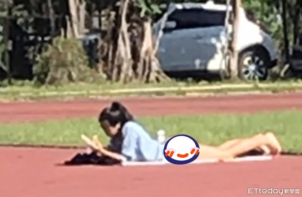 天啊!新北市中和警分局前方約50公尺的操場跑道上,本月16日下午3點多趴著一名身材姣好的辣妹,正專注看書,培養文青的好氣質,任由穠纖合度的屁屁被太陽曬著,路過民眾驚嘆「夏天的最美風景」,不少人看了也微笑,「真是藝術呀…」