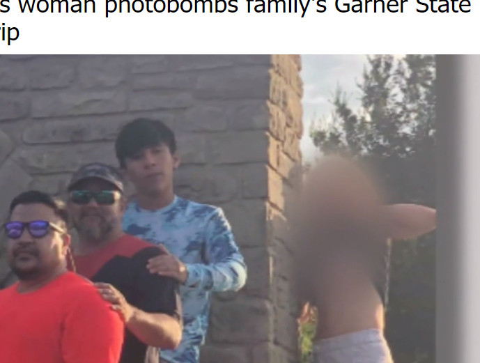 綜合外媒報導,達維拉表示,日前他們家族一行人到加納州立公園(Garner State Park)旅行,這趟旅行對他們而言別具意義,因為這趟旅行是為了紀念丈夫過世的阿嬤。達維拉說,當時他們就站在加納州立公園的園區石碑前拍照,就在這時,一名陌生女子趁機亂入,還故意將上衣掀起露點燦笑,一起被拍進家族合影裡。照片中也可以看到,有一名男子就站在露點女子的上面,往下看著她,一樣不是達維拉家族成員的人。