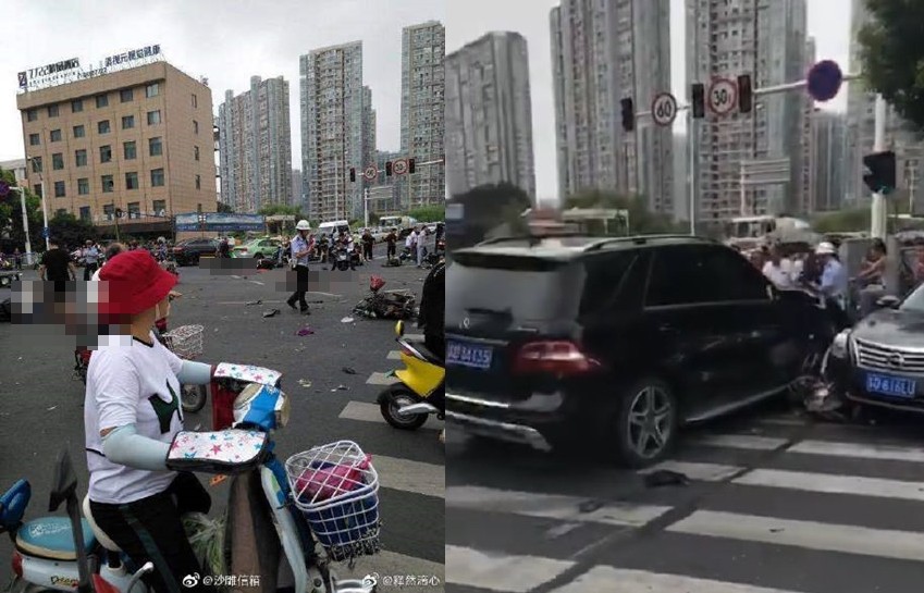 綜合陸媒報導,當天上午黑色賓士行經晉陵路、勞動路路口時,撞上多部機車與護欄,之後撞到另一輛轎車後才停下。現場影片中可見,路上到處都是零件碎片,多名受害者也倒在地上。