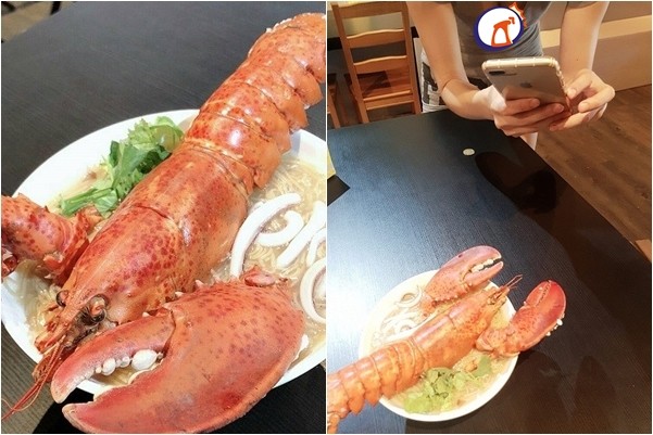 網友留言「其實角度對了」、「好大的龍蝦,好胸」、「中午天氣看到照片流鼻血」、「有奶就讚」、「哪有龍蝦」、「稍微拉高點就差不多了,那麼大碗的波龍原本就不好拍!」更有網友直接修圖把照片主題放在老闆娘的長輩上。