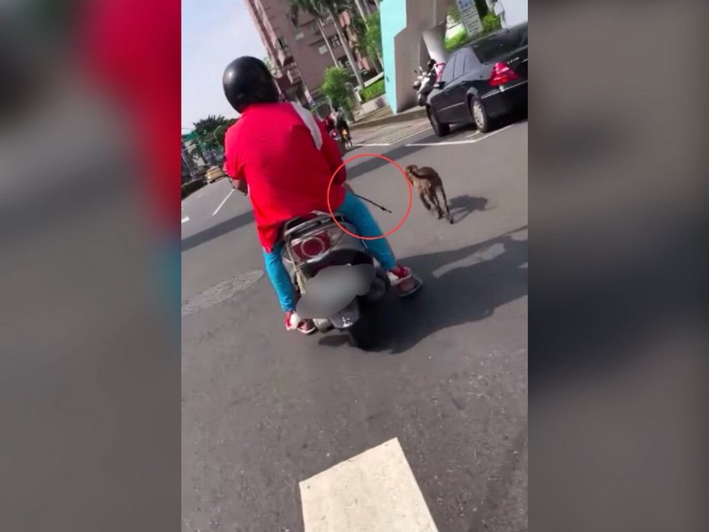 誇張遛狗!台中有民眾日前騎車行經東區大智路,驚見前方機車的女乘客手持愛的小手,朝一旁的黑棕色狗狗指揮,但當時烈日當頭,狗狗明顯很喘,但仍持續追著主人的機車跑,民眾要車主停止這樣的行為,未料對方竟說「這樣跑它才會吃飯」,讓民眾怒而PO文大罵「要不要這樣遛你!」;警方表示,目前以車追人將會找飼主了解,而該行為可依《道交條例》及《動保法》開罰。