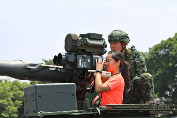 隨後,安排的動態裝備體驗,包含火砲試拉及甲車試乘兩項難得的體驗活動,吸引學員爭相體驗,除透過拉火繩的操作過程,近距離感受武器威力;另外,在教官帶領下,登上雲豹甲車,興奮地感受甲車在戰場上奔馳的速度感,讓學子能以實訓、實作及實況方式體驗,進而感受全民國防的多元魅力。
