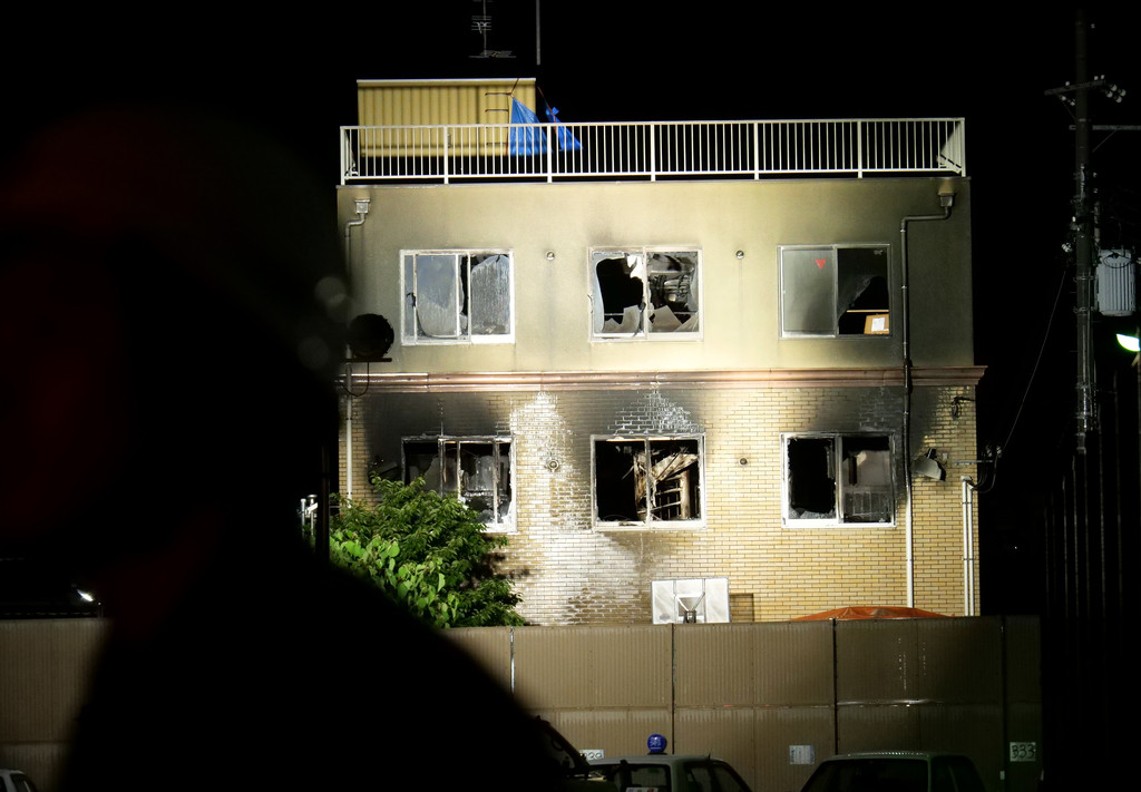 遭縱火的工作室建築面積約700平方公尺,大部分燒毀。警方事後在距離火場約100公尺外的一處場所拘留一名41歲男子,涉嫌在建築1樓入口處潑灑易燃液體並點火,釀成整起悲劇。