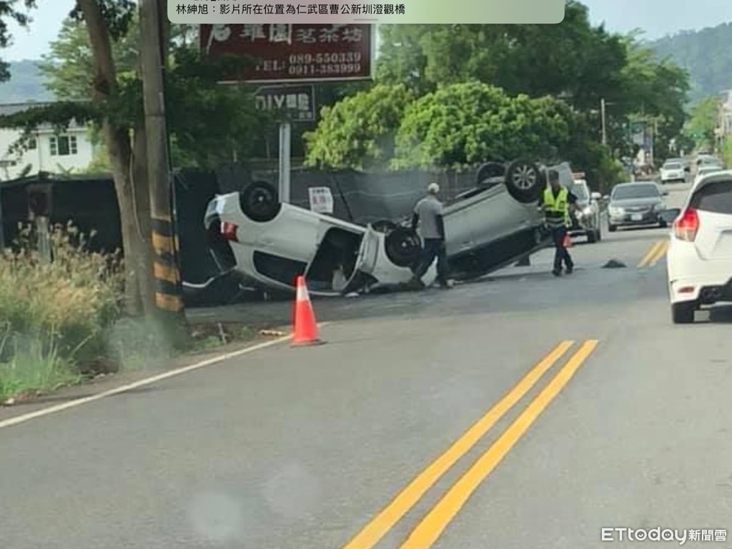 警方初步調查,車禍地點在鹿野鄉龍田村龍馬路和北三路口,疑似范姓女駕駛欲雙黃線超車,結果撞上對向欲左轉北三路李姓民眾駕駛的自小客車,導致雙方車輛翻覆。