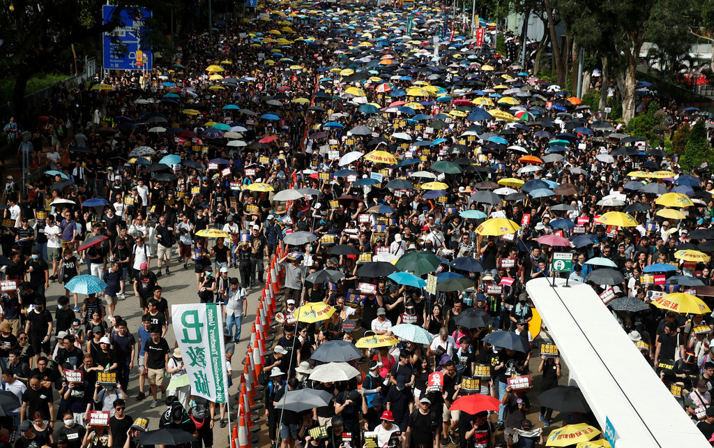 據港媒報導,維多利雅公園約下午1點就有穿著黑衣的遊行人士開始聚集,到2點半左右,黑衣人潮更進一步湧現,許多人還撐起了雨傘。3點之後,民陣召集人岑子杰上台發表演說,他表示,從3月31日開始,香港人多次走上街頭,反對修訂逃犯條例,訴求非常清晰,就是「撤回惡法,撤銷暴動,徹查警方,重啟政改,立即雙普選。」