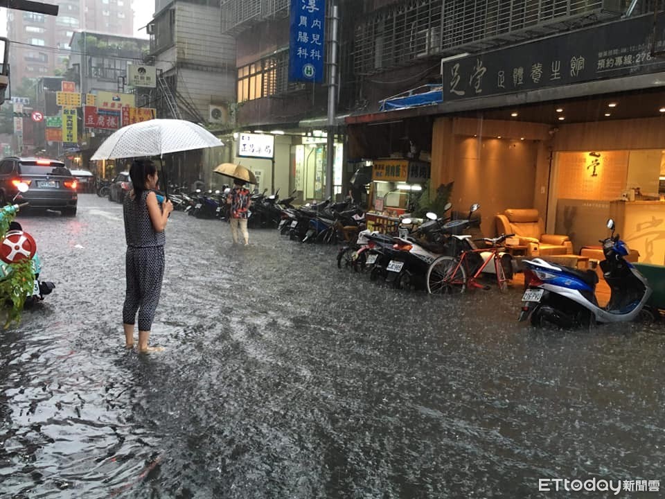 ▲台北降下大雷雨,通化街38巷淹水。(圖/讀者提供)