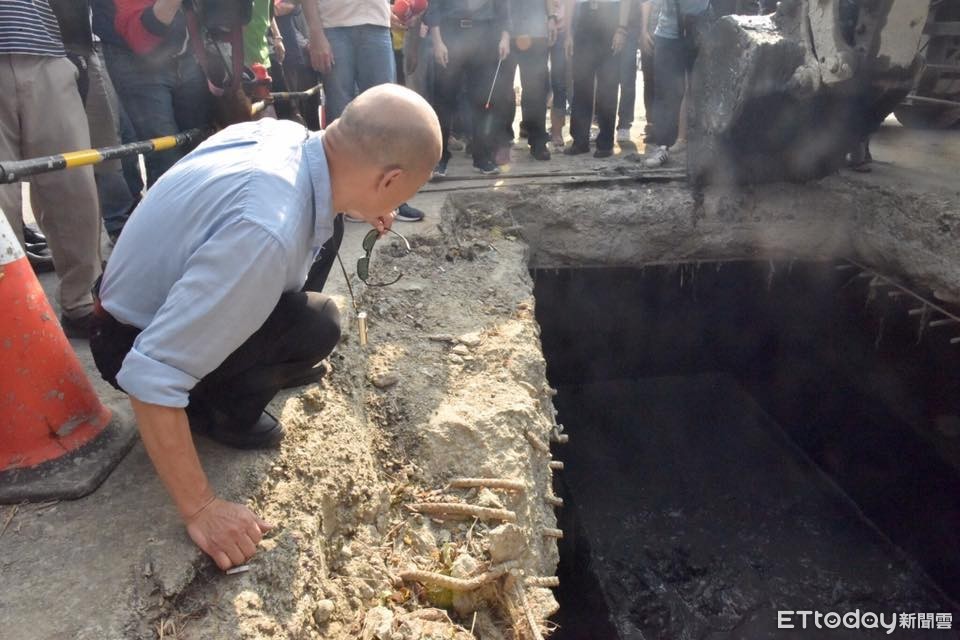 ▲韓國瑜日前視察神農路下水道清淤情形。(圖/記者洪正達攝)