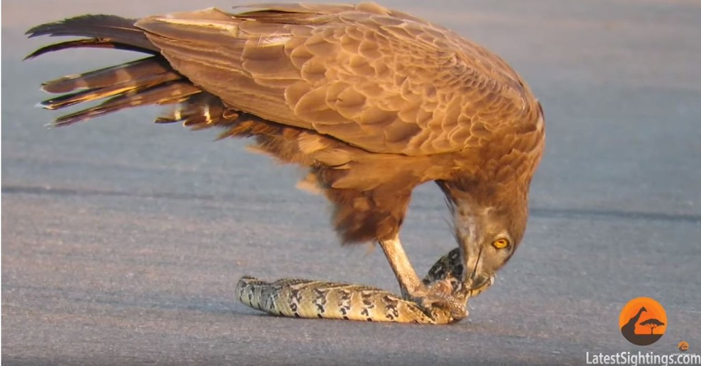 ▲老鷹生吃蛇的畫面駭人。(圖/翻攝自YouTube/Kruger Sightings)