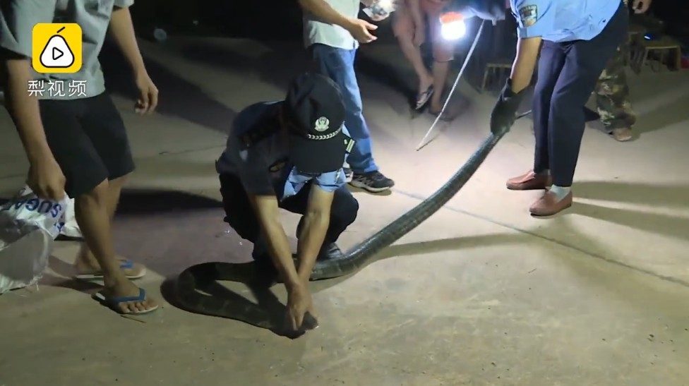 警方表示,所捕到的蛇屬於國家二級保護的眼鏡王蛇,身長3.2公尺、重7公斤,是一種具有非常毒性的蛇,人或動物若不小心被咬到,在沒有血清的情況下,可能半小時內就會身亡,目前計畫將蛇移交給當地林業與草原局的野保單位處理。