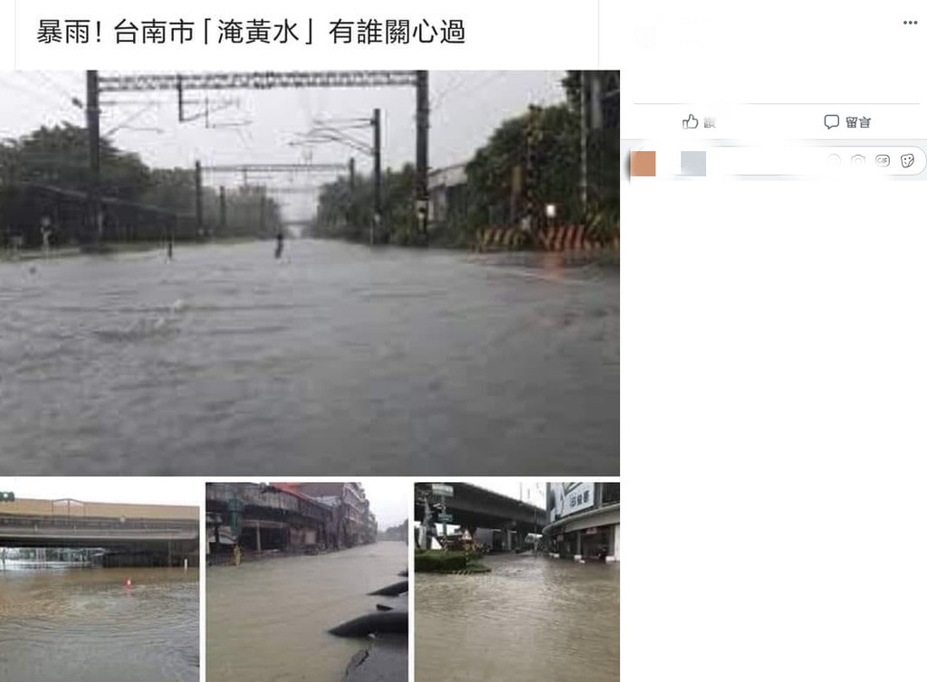 市府指出,因有人在臉書拿去年0823豪雨造成台南市新營區東山鐵路平交道淹水,及高雄仁武地區淹水,偽造成台南淹水,事實上台南並沒有淹水。因發布不實假消息容易造成社會恐慌,市長黃偉哲針對假消息的態度是「零容忍」。