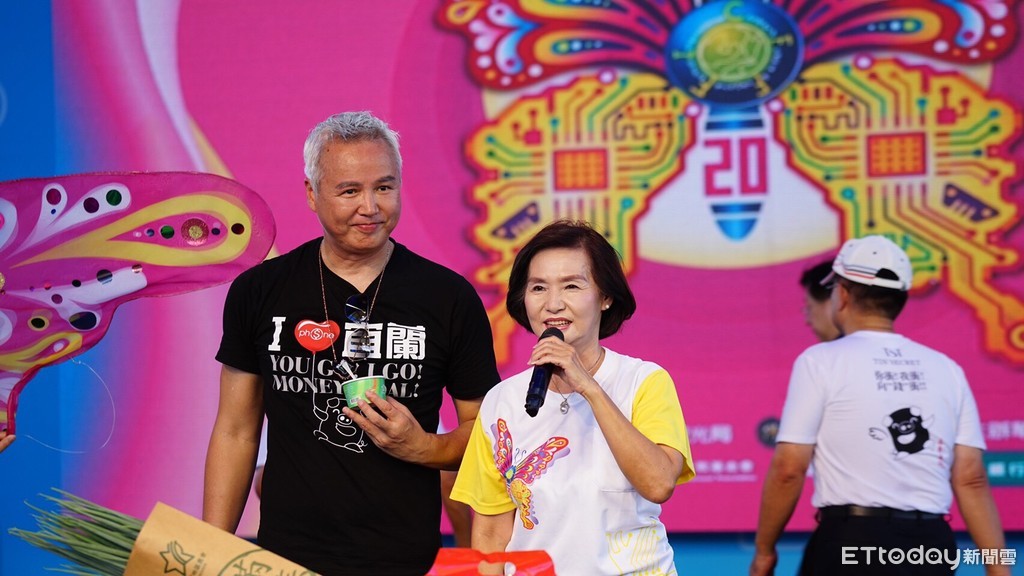 林姿妙與林瑞陽團員跟著踩街隊伍遊行,沿路欣賞童玩節的表演活動及設施,在場民眾看到林瑞陽感到驚喜萬分,林瑞陽也充分展現他親民的一面。
