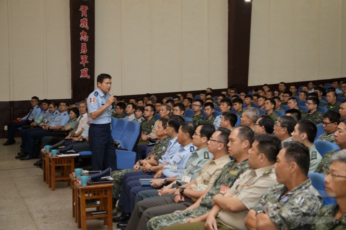 李副總長上午前往空軍清泉崗基地主持講習,中部地區三軍部隊資安長及資訊安全承辦人員共同與會,針對資訊科技及手機資安管理等議題進行宣導,同時邀請中科院資訊安全防護專家實施專題演講,介紹世界最新的網路威脅趨勢與攻擊態樣,提升各部隊資安防護意識。