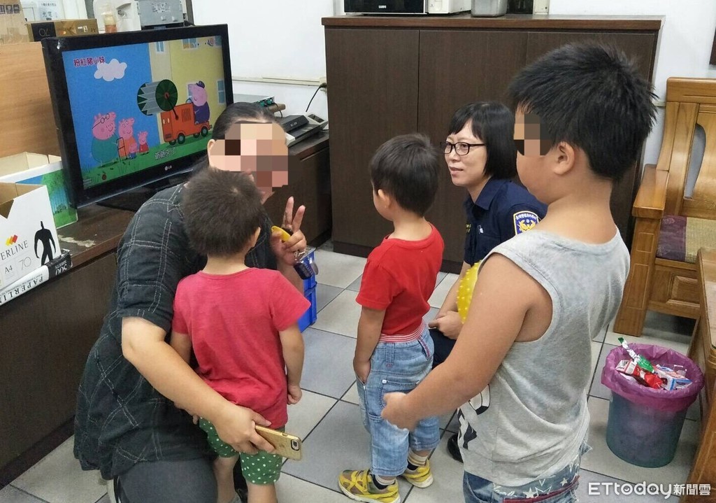 ▲4歲鄧姓男童24日晚間經平鎮北勢所員警協尋,男童母親與2位哥哥在派出所團聚。(圖/記者沈繼昌翻攝)