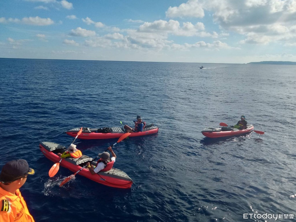 ▲9人分乘5艘獨木舟前往小琉球遇強勁海流漂向外海。(圖/記者郭世賢翻攝,下同)