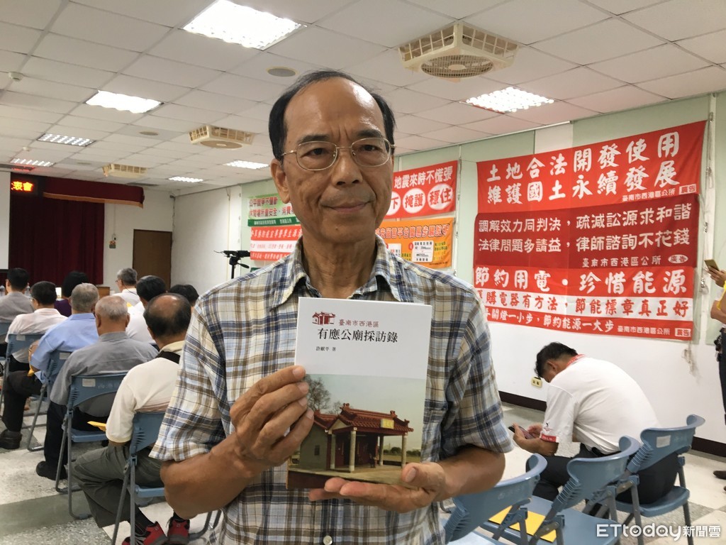 ▲「神鬼行者」許献平老師,在台南市西港區公所舉辦《台南市西港區有應公廟採訪錄》新書發表會。(圖/記者林悅翻攝)