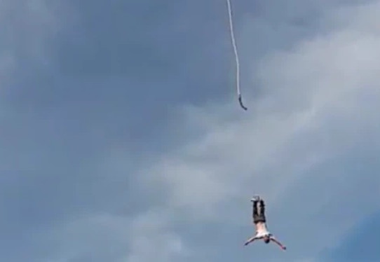 目擊者拍攝到的影片,就在男子縱身一躍後可以看到繩索立刻鬆掉,畫面驚悚,不少鄉民看到也直呼「這樣以後真的不敢玩高空彈跳了!」、「這種東西的安全不是只有腳踝而已吧?」