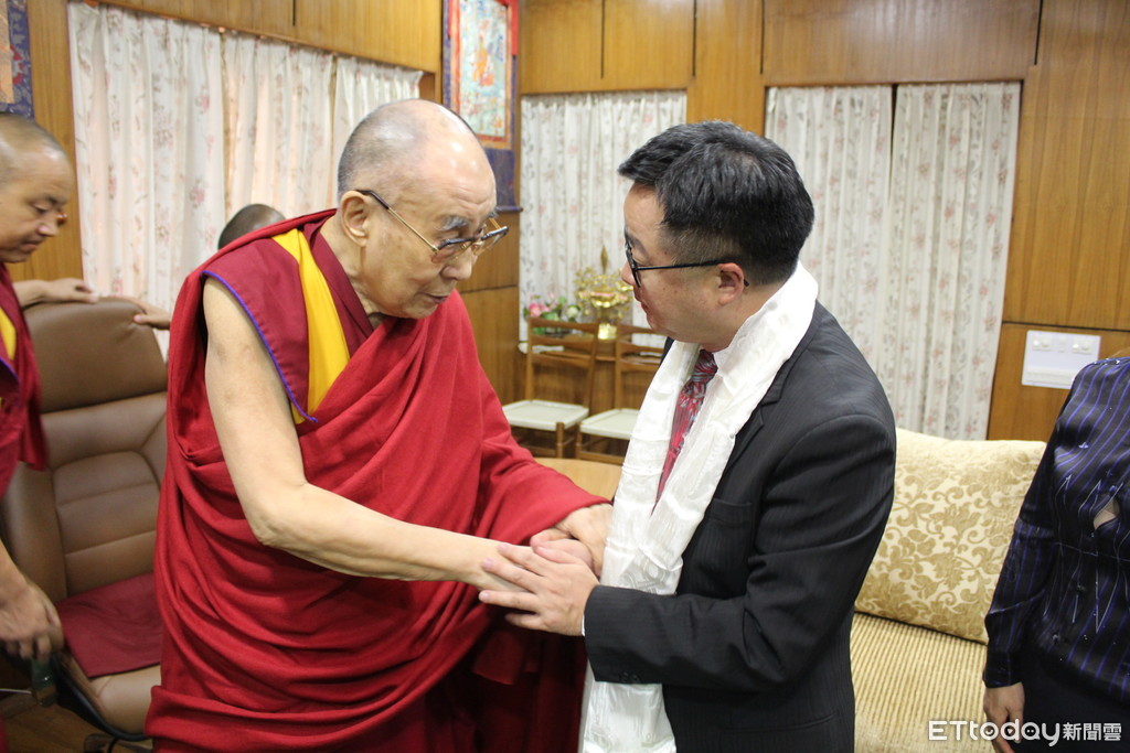 ▲羅文嘉拜會達賴喇嘛。(圖/民進黨提供)