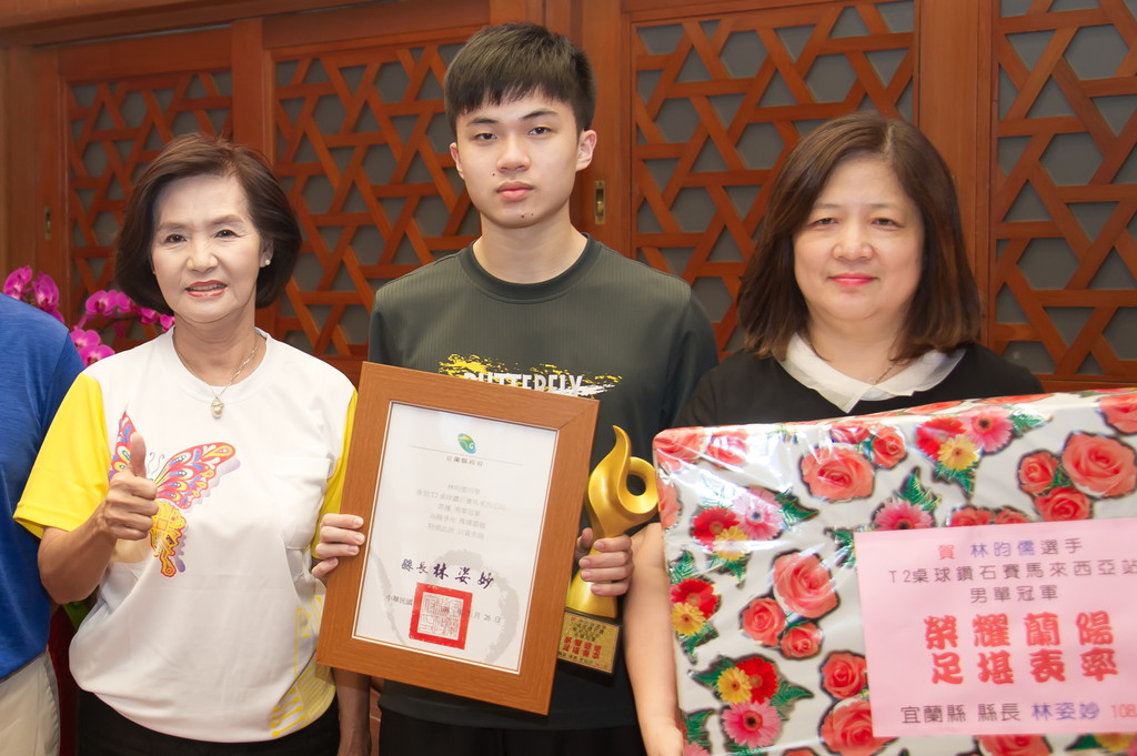 林姿妙表示,林昀儒不僅是台灣之光也是宜蘭人的驕傲,也讚許林爸爸、林媽媽自林昀儒小學開始就努力栽培孩子的志向,這次勇奪世界冠軍的佳績,更提升宜蘭在世界體壇上的能見度。