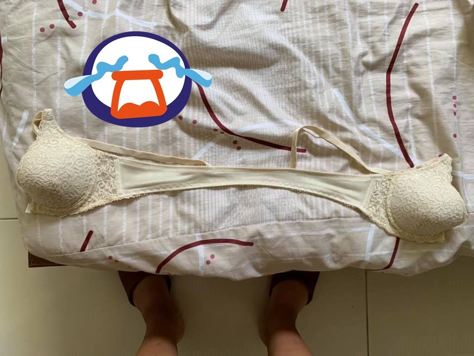 照片中,內衣被展開、平放在床上,床邊還站了一個人,若以人做比例尺,這條背片甚至比人微張開的雙腳寬度還要長一點。看到這樣的內衣,讓原PO是一頭霧水,覺得怎麼會有人「兩胸」間這麼寬,而且如果內衣穿「這麼大件」,到底會是幾罩杯。