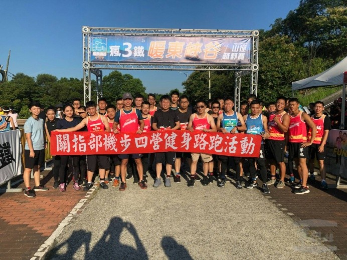 2019瘋三鐵暖東峽谷山徑越野跑活動27日於基隆市暖暖運動公園熱血開賽,關指部機步4營響應賽事,號召單位熱愛運動官兵,由營長林中校率官兵及眷屬30餘人共襄盛舉。