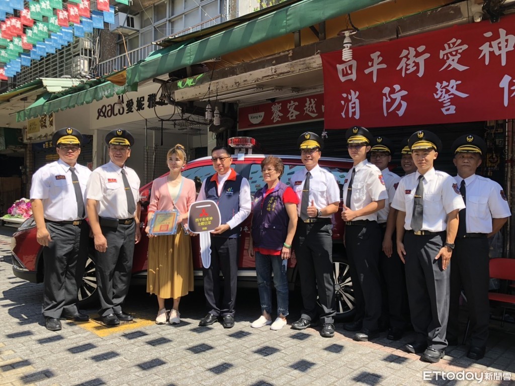 ▲鄧圩庭女士及四平街愛神全體信眾捐贈1輛消防警備車。(圖/記者孫于珊翻攝,下同)