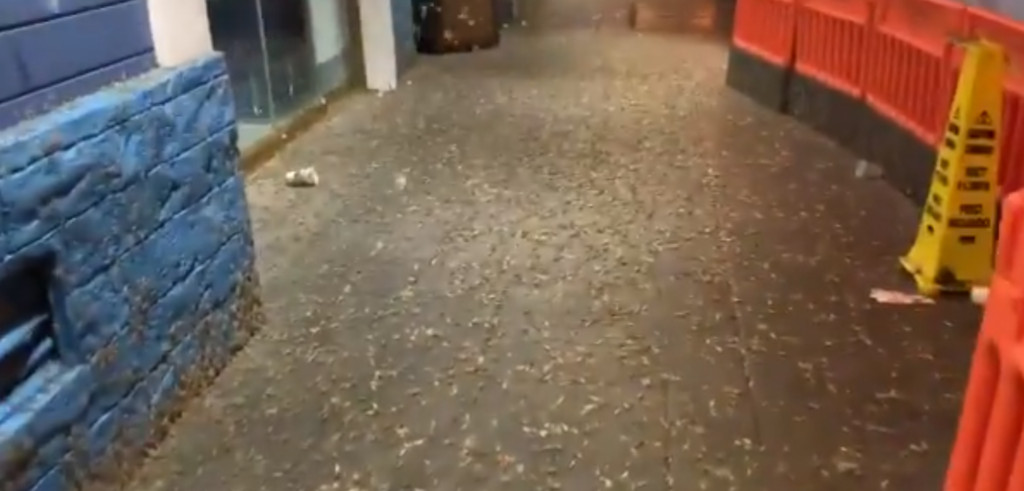 美國內華達州拉斯維加斯(Las Vegas)近日出現成千上萬隻蝗蟲過境鋪滿整條街道,形成天然的「蝗蟲地毯」,並高速飛行影響人們行走,也嚇壞不少遊客和當地居民。生態學家表示,他們又被稱作「摩門蟋蟀」,可能因為害怕會被同類吃掉,所以會加速飛行。