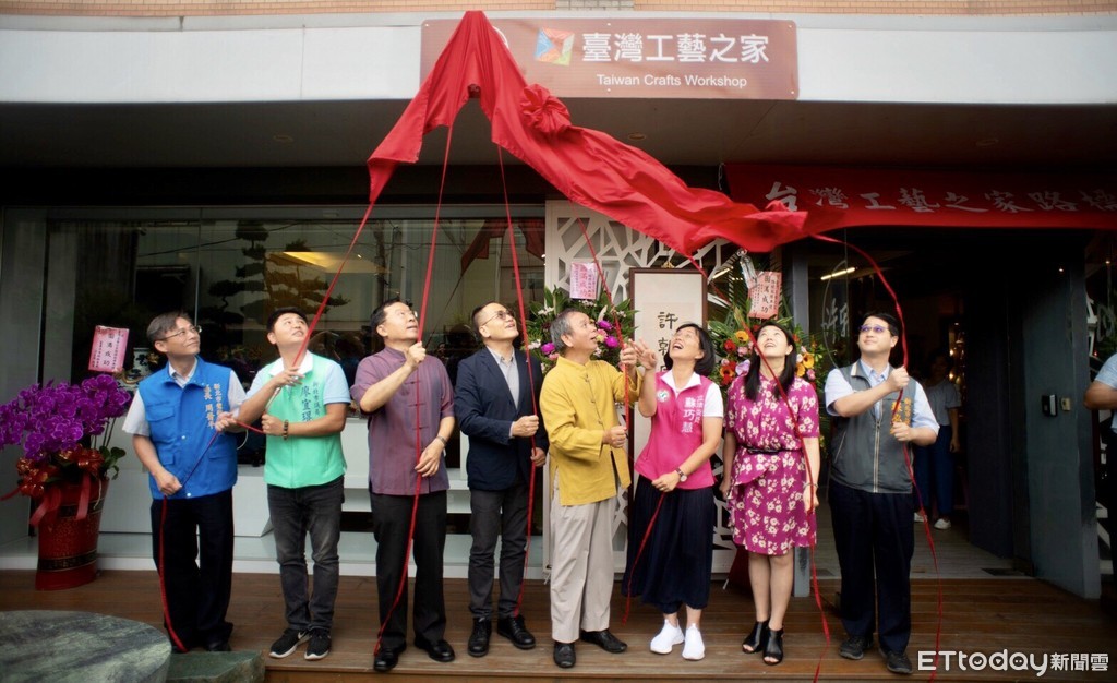 全台首面的「台灣工藝之家」路牌,28日下午由行政院文化部次長彭俊亨、新北市文化局長蔡佳芬、立委蘇巧慧及新北市議員蘇泓欽、廖宜琨及陶藝大師許朝宗,歷經10多年努力爭取,共同在鶯歌大湖路的吉洲窯揭牌。