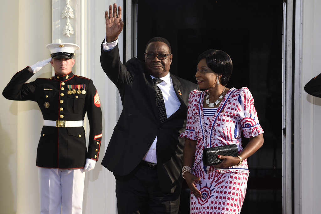 ▲馬拉威總統穆薩里卡(Peter Mutharika)與夫人葛楚得(Gertrude Mutharika),2014年5月出席美國前總統歐巴馬舉辦的餐宴。(圖/達志影像/美聯社)