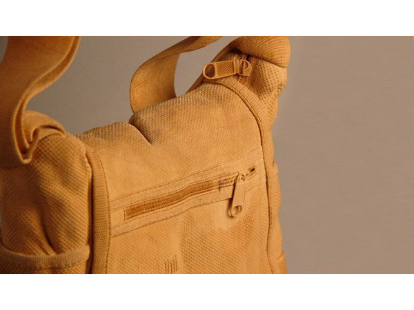古早時候的麻布書包,居然也是由一塊木頭雕刻而成,不管是麻布的質感或是立體的拉鍊,都在呂美麗的細心刻鑿下顯示成形,若是沒有實際摸過,光看照片真的很難想像這樣的一件立體作品是由一整塊木頭雕塑而成。