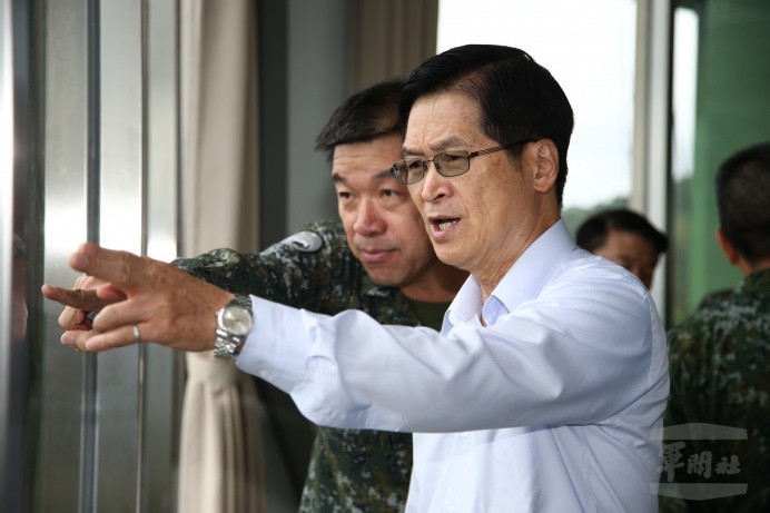 嚴部長上午偕同空軍司令熊厚基上將、中科院院長杲中興等人,全程視導操演,聽取任務簡報,提出工作指導。