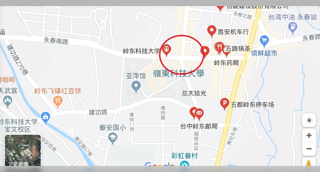 ▲藥頭台中嶺東科技大學附近,彰警開2槍棄車逃逸。(圖/Google Map.)