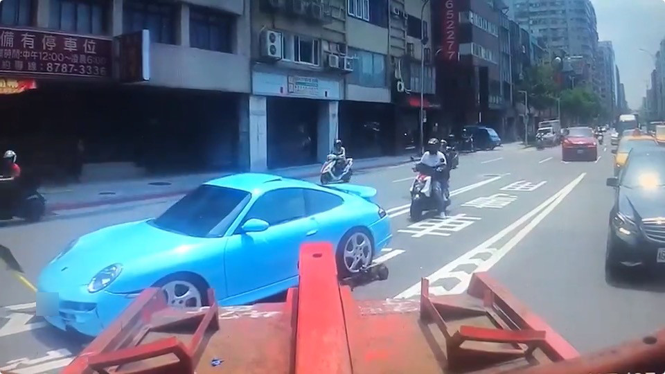 臉書私密社團《爆料車界(爆料+對質)》有網友PO出這段影片,影片中可以看到一輛保時捷前輪被吊起拖行,拖吊車準備開上麥帥一橋,沒想到轉出巷口5秒後被拖吊的保時捷就硬生生的墜下。