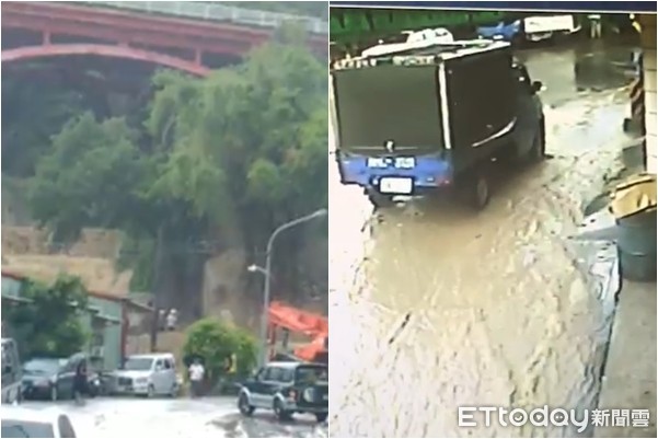 監視器畫面拍下,中午12時大雨傾瀉而下,濁黃的泥流也隨著暴起淹沒路面,就連放在住家門口的手推車都被沖倒。當地住戶指出,雨勢最大的時間就坐落在12點前後,路旁低窪處滿是泥水,只好趕快降下鐵門、拿出掃把掃水,以免住家內部遭到水勢波及,一旁的緩坡還有落石被沖下,場面真的相當駭人。