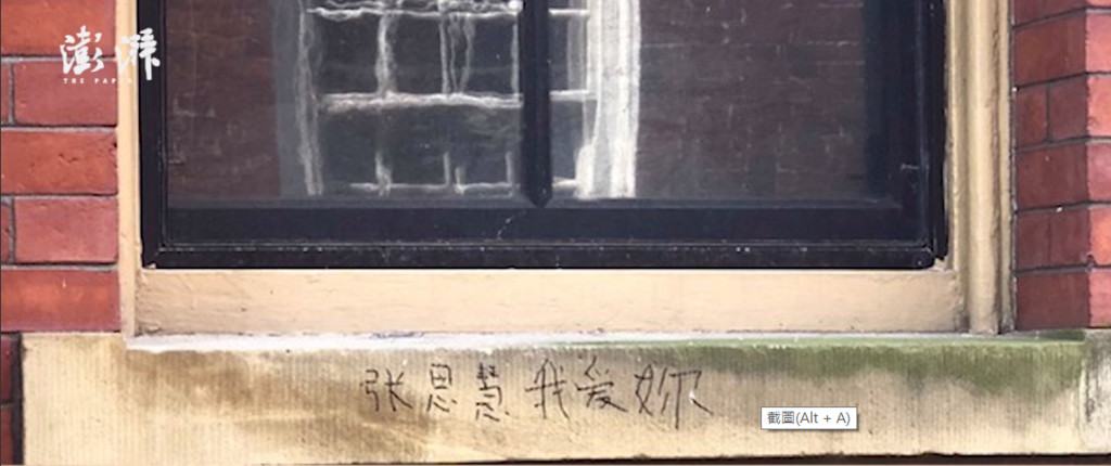《中新網》報導,「約翰.哈佛雕像(John Harvard Statue)」的底座,及一棟宿舍的側邊窗沿疑似被人用黑色筆寫上中文字「慧慧&瑄瑄一輩子」、「張思慧大…」、「張思慧我愛你」等。