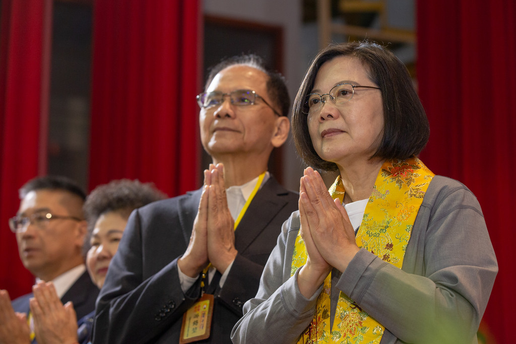 ▲蔡英文抵達宜蘭,出席「宜蘭全民供佛齋僧暨孝親報恩大會」。(圖/總統府提供)