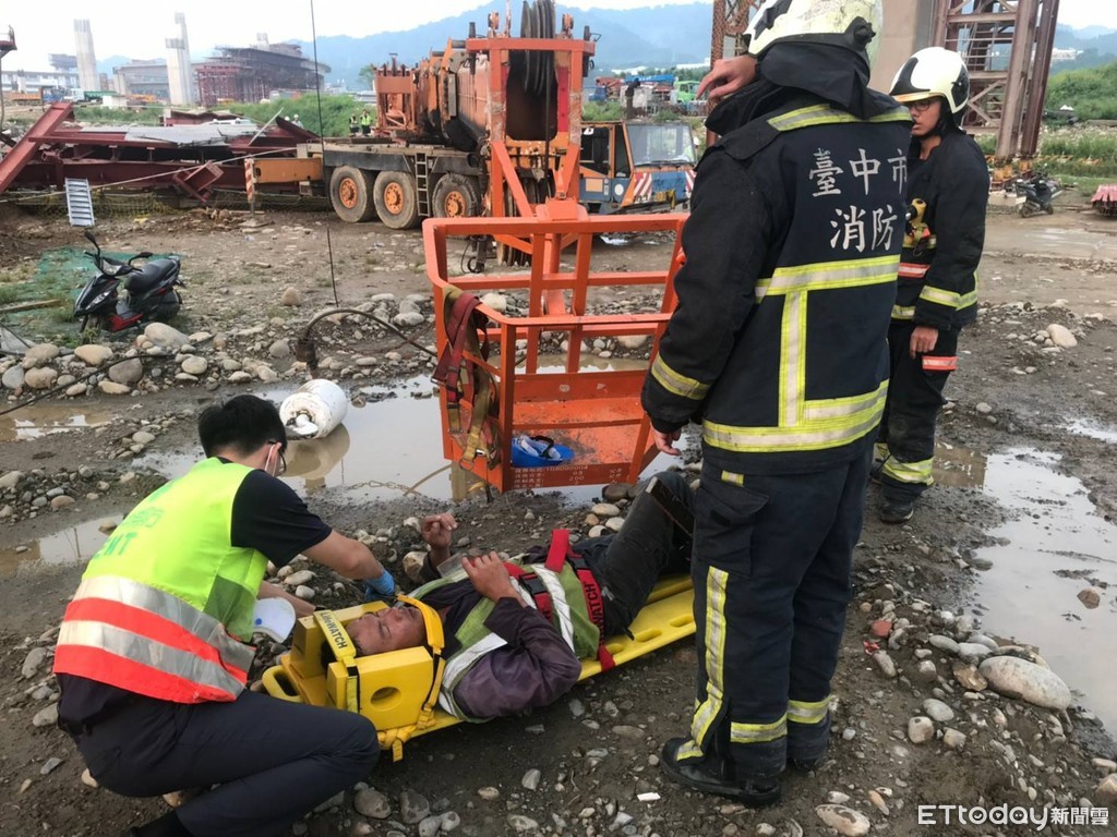 台中市消防局4日下午5點17分獲報,在旱溪東路6段國4台中環線豐原潭子段第C714標潭子交流道工程,疑似有鷹架倒塌掉落造成人員受傷受困,到場確認有2名傷者,其中1名45歲台籍工人腳骨折,另名40歲泰籍工人因小腿明顯變形、右手小指斷肢,由工地吊車送至地面。
